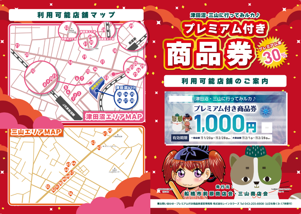 津田沼・三山に行ってみルカ♪ プレミアム付き商品券 利用可能店舗のご案内マップを作成しました。 2026.01.29 津田沼・三山に行ってみルカ♪ プレミアム付き商品券 利用可能店舗のご案内 見やすいマップを作りましたのでご利用下さい Tweet Share Hatena Pin it プレミアム付き商品券の"売れ残り分"の販売が追加決定...