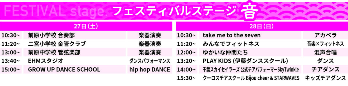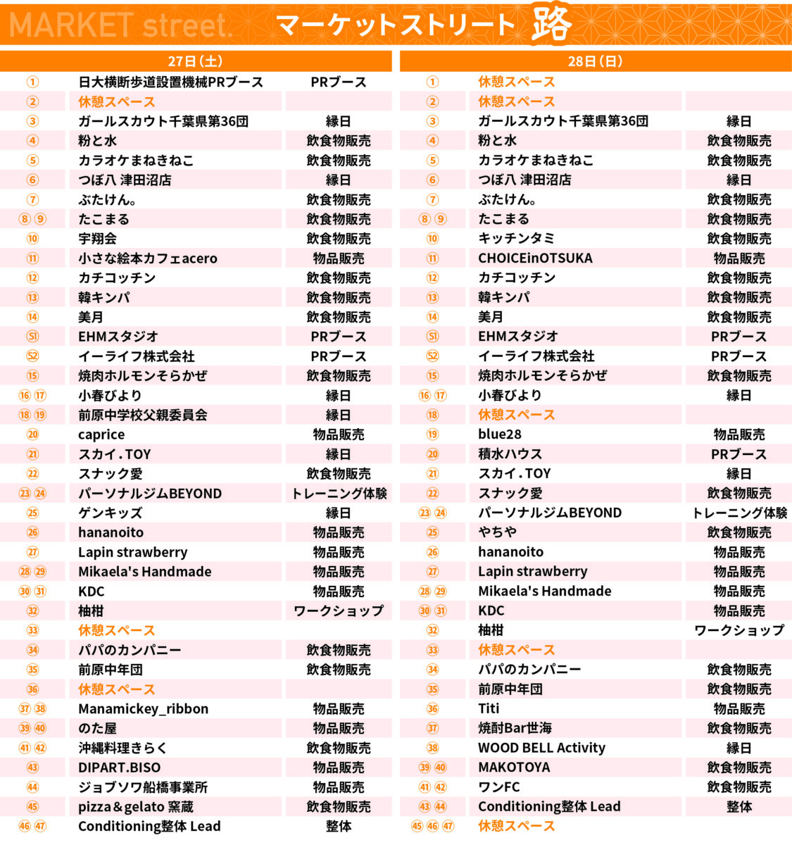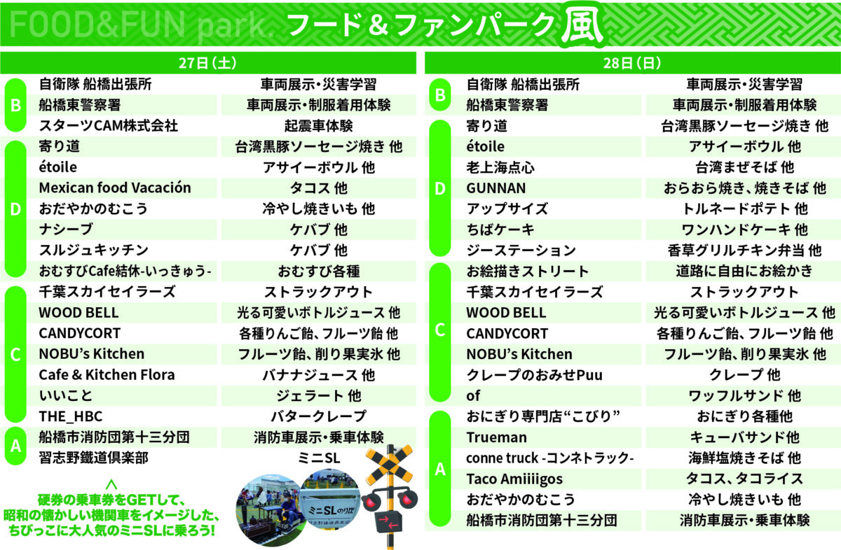 ふなばし市民まつり津田沼会場 出店(展)者さん・キッチンカー・出演者さん一覧